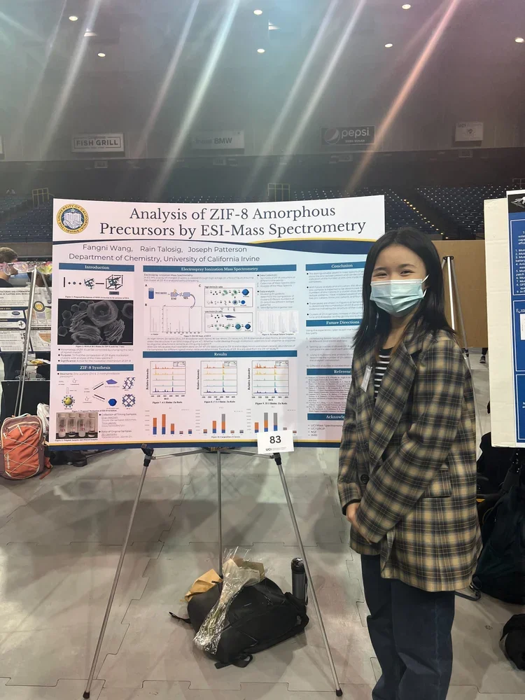 Nina/Fangni Wang for her project titled "Analysis of ZIF-8 Amorphous Precursors by Electrospray Ionization Mass Spectrometry".
